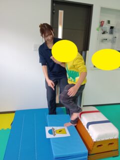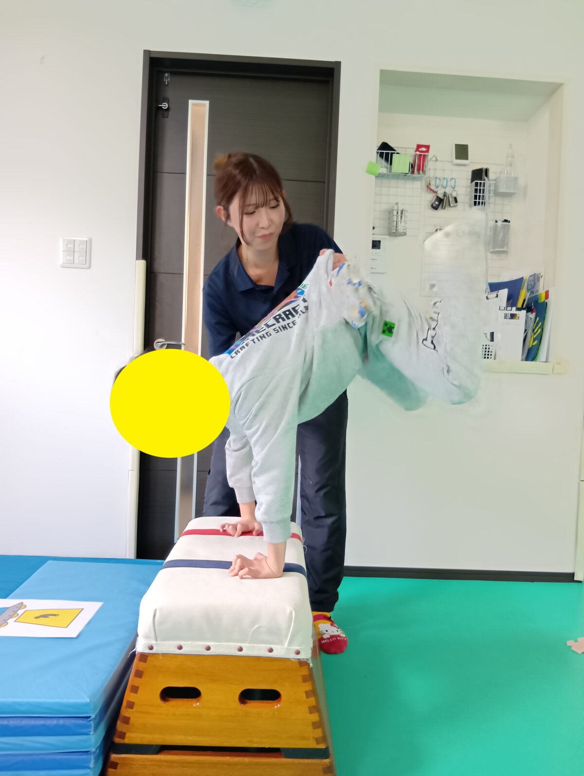 先生と手を繋いでゆっくり跳び箱を降りることができました!とってもかっこいいよ☆