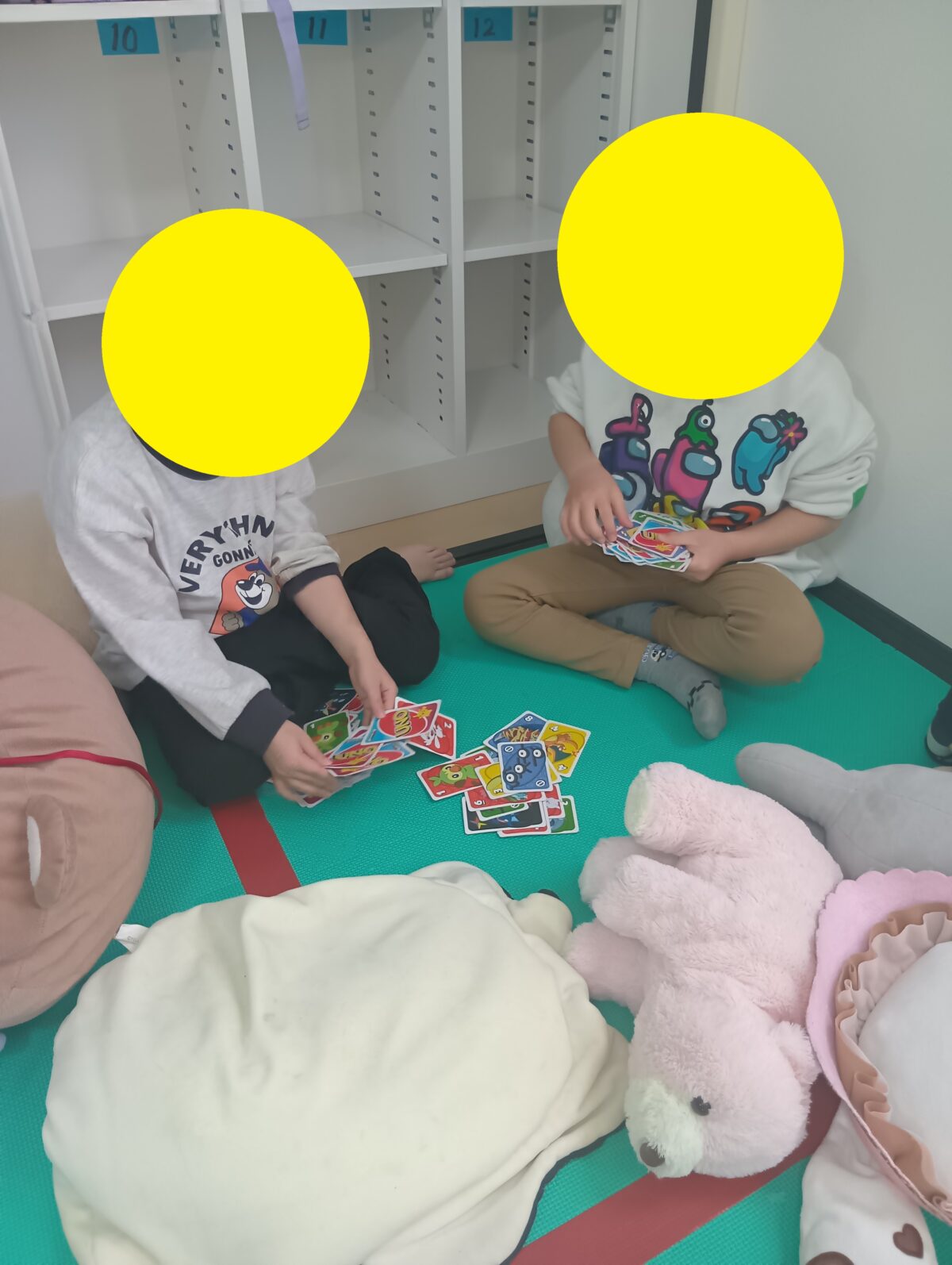 自由時間には、お友達同士でカードゲームで遊ぶこともあります。