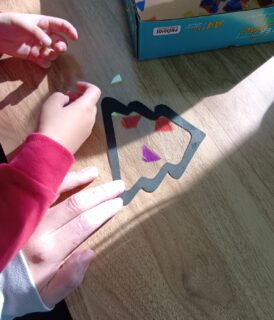 自分ですきなカラーセロハンをたくさん貼り付け