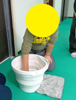 教室の床を全力で雑巾がけ!